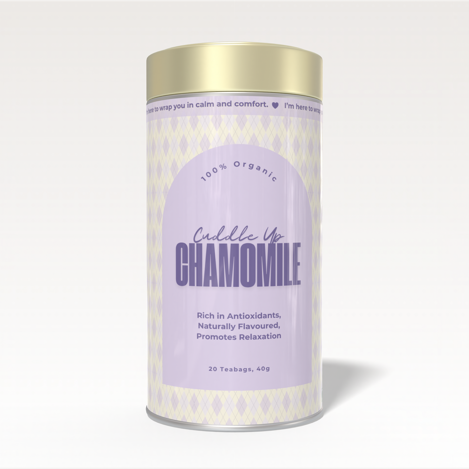 Wrap yourself in pure comfort with Cuddle Up Chamomile. Crafted with a soothing blend of chamomile flowers and lemongrass, this calming herbal tea is your perfect companion for winding down and finding your moment of peace. Known for their natural relaxing properties, chamomile and lemongrass work together to help ease stress, calm the mind, and promote restful sleep — one cozy sip at a time.